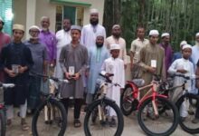 চান্দ্রায় ৬০ দিন জামাতে নামাজ আদায়ে শিশু-কিশোরদের সাইকেল উপহার।