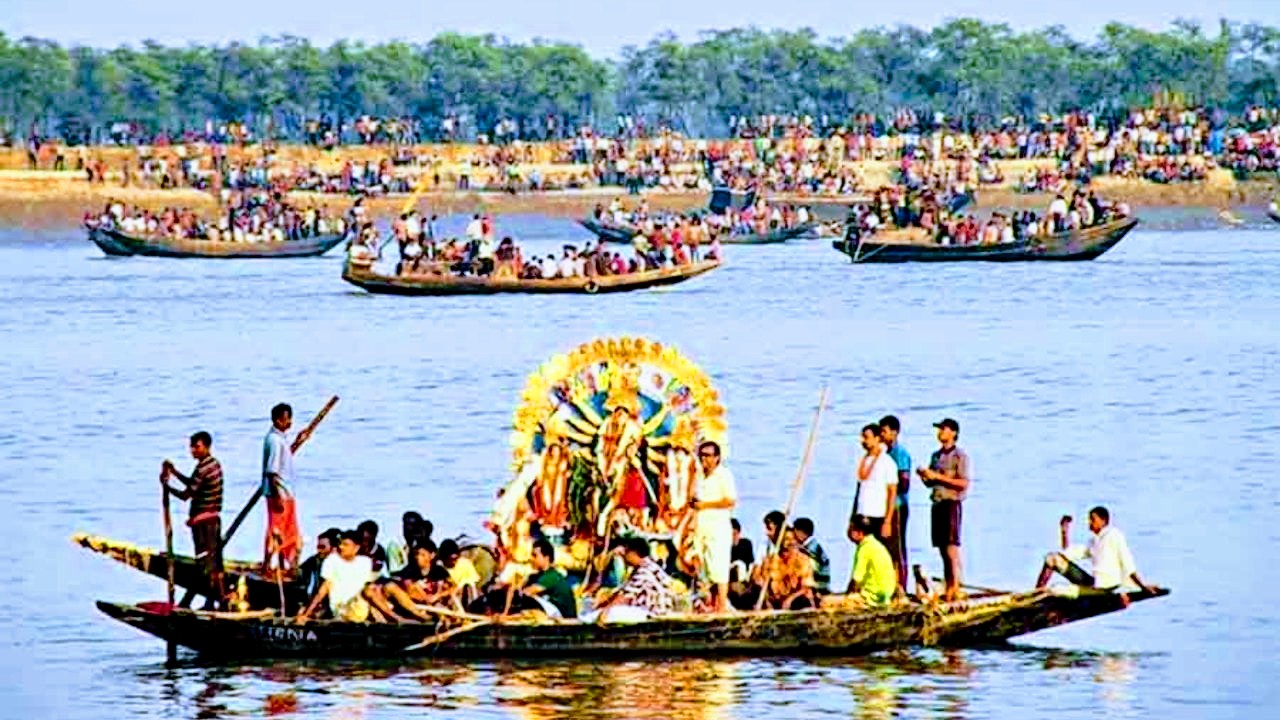 সাতক্ষীরা জেলার দেবহাটা উপজেলার ইছামতি নদীতে মিলন মেলা ছাড়াই অনুষ্ঠিত হয়েছে প্রতিমা বিসর্জন।