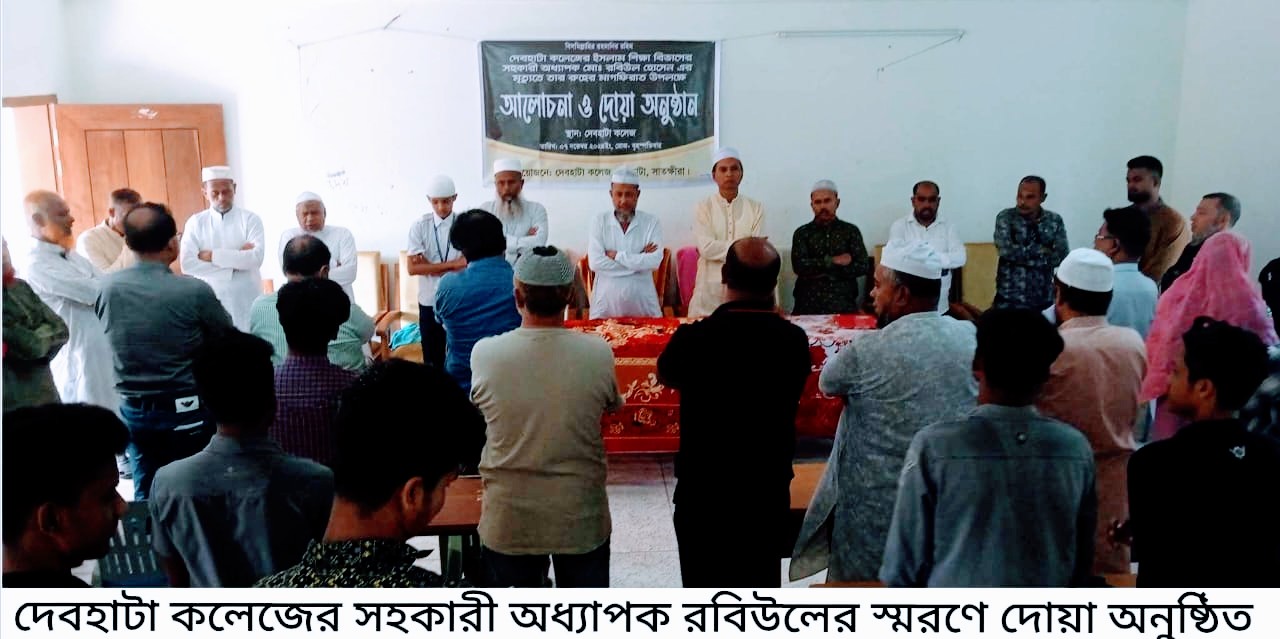সাতক্ষীরার দেবহাটা কলেজের ইসলামের ইতিহাস ও সংস্কৃতি বিভাগের সহকারী অধ্যাপক রবিউল ইসলাম গত মাসের ৩০ তারিখ রোড এক্সিডেন্টে মৃত্যু বরণ করেন, ওনার রুহের মাগফেরাত কামনায় দেবহাটা কলেজের আয়োজনে ৭ নভেম্বর বৃহস্পতিবার সকাল ১১ টার সময়, কলেজের হল রুমে স্মরণ সভা ও দোয়া অনুষ্ঠান অনুষ্ঠিত হয়েছে। এই সময় উপস্থিত ছিলেন দেবহাটা কলেজের ভারপ্রাপ্ত অধ্যাপক হাফিজুর রহমান, নিহত অধ্যাপকের বড় ছেলে ফাহিম হোসেন, ভাই মোহাম্মদ দেলওয়ার হোসেন, গোলাম, মেহেদী হাসান, কলেজের সহকারী অধ্যাপক আবু তালেব, আলমগীর সহ অত্র কলেজের অধ্যাপক বৃন্দ উপস্থিত ছিলেন। এই সময় অধ্যাপক হাফিজুর রহমান বলেন রবিউল ইসলাম অত্যন্ত বিনয়ী, দীনি, সামাজিক ও ধর্মপ্রান মানুষ ছিলেন। দেবহাটা কলেজের প্রতিষ্টাকালীন সময় থেকেই তিনি এই কলেজের ইসলামী শিক্ষা বিভাগের বিভাগীয় প্রধান হিসেবে দায়িত্ব পালন করছেন।আমরা দোয়া করি আল্লাহ যেনো ওনার জান্নাতুল ফেরদৌস দান করেন।