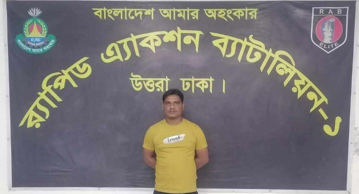 র্যাবের এ্যাকশন ব্যাটালিয়ন (র্যাব) প্রতিষ্ঠালগ্ন থেকে বিভিন্ন ধরণের অপরাধীদের গ্রেফতারের ক্ষেত্রে জোরালো ভূমিকা পালন করে আসছে। অবৈধ অস্ত্র, গোলাবারুদ উদ্ধার, চাঁদাবাজ, অবৈধ দখলদার, সন্ত্রাসী, খুনি, ছিনতাইকারী, অপহরণকারী, ধর্ষক, প্রতারকদের গ্রেফতার করে দেশের আইন-শৃঙ্খলা পরিস্থিতি নিয়ন্ত্রণে রাখতে সদা তৎপর রয়েছে র্যাব। মামলার এজাহার সুত্রে জানা যায়, মামলার বাদী মোঃ সোহেল রানা(৪৪), পিতা- মৃত আইনুদ্দিন সরকার, সাং- খারিজাগাতী, থানা- গোদাগাড়ী, জেলা- রাজশাহী এর মেয়ে ভিকটিম একজন ১৪ বছরের নাবালিকা মেয়ে এবং রাজাবাড়ীহাট উচ্চ বিদ্যালয়ের নবম শ্রেণীর ছাত্রী। আসামী মোঃ শিফাত (১৮), পিতা- মোঃ আমির হোসেন, সাং- বিজয়নগর দরগাপাড়া, থানা- গোদাগাড়ী, জেলা- রাজশাহী পাশ্বর্ব তী গ্রামের ছেলে। আসামী মোঃ শিফাত ভিকটিমকে স্কুলে যাওয়ার পথে প্রায়ই কুপ্রস্তাব দিত। ভিকটিম তার কুপ্রস্তাবে রাজী না হয়ে বিষয়টি বাসায় গিয়ে বাদীকে জানায়। এরই ধারাবাহিকতায় গত-০৮/০৪/২০২৫ তারিখ দুপুর আনুমানিক ০২:৫৫ ঘটিকায় ভিকটিম নিজ বাসা হতে উচ্ছাস কোচিং সেন্টারে যাওয়ার পথে রাজশাহী জেলার গোদাগাড়ী থানাধীন রাজাবাড়ীহটি থেকে ৫০০ গজ পূর্বে পৌছাঁলে আসামী শিফাত এবং তার সহযোগী ০৩ জন সহ ভিকটিমকে জোরপূর্বক সিএনজিতে করে অজ্ঞাত স্থানে তুলে নিয়ে যায়। ঘটনাটি দেশব্যাপী প্রিন্ট, ইলেক্টনিক ও সোশ্যাল মিডিয়ায় ব্যাপক আলোড়ন সৃষ্টি করে। চাঞ্চল্যকর এ ঘটনায় ভিকটিমের ছেলে বাদী হয়ে রাজশাহী এর গোদাগাড়ী থানায় ৪ জনকে এজাহার নামীয় আসামী করে একটি অপহরণ মামলা দায়ের করেন, যার মামলা নং-১৮, তারিখঃ গত ১৫ এপ্রিল ২০২৫ ইং, ধারাঃ নারী ও শিশু নির্যাতন দমন আইন,২০০০(সংশোধনী ২০২০) এর ৭/৩০। উল্লেখিত মামলার প্রেক্ষিতে ভিকটিম কে উদ্ধার ও আসামীদের ’ কে গ্রেফতারের অভিযানে নামে র্যাব। এরই ধারাবাহিকতায় র্যাব-৫, সদর কোম্পানী রাজশাহী ও র্যাব-১, সিপিএসসি পোড়াবাড়ী, গাজীপুর এর একটি চৌকস আভিযানিক দল অদ্য ২০ এপ্রিল ২০২৫ তারিখ সময় ১৫.৫৫ ঘটিকায় জিএমপি, গাজীপুর কাশিমপুর থানাধীন ০২ নং ওয়ার্ড মোহাম্মদিয়া এলাকায় অভিযান পরিচালনা করে ভিকটিম এবং মামলার ১ নং এজাহার নামীয় আসামী ১ শিফাত(১৮),পিতা- মোঃ আমির আলী, সাং- বিজয়নগর দরগাপাড়া, থানা- গোদাগাড়ী, জেলা- রাজশাহী ’কে গ্রেফতার করে। প্রাথমিক জিজ্ঞাসাবাদে গ্রেফতারকৃত আসামী উক্ত ঘটনার সাথে তার সম্পৃক্ততার কথা স্বীকার করেছে। গ্রেপ্তারকৃত আসামিকে রাজশাহী জেলার গোদাগাড়ী থানায় হস্তান্তর করা হয়েছে।