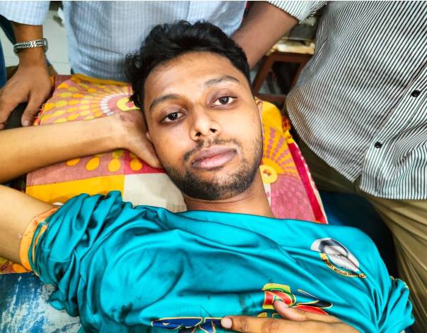 খুলনায় দুর্বৃত্তের ছোড়া গুলিতে গুলিবিদ্ধ হয়েছেন গোপালগঞ্জ বিজ্ঞান ও প্রযুক্তি বিশ্ববিদ্যালয়ের ছাত্র এস এম সাজিদ হাসান। রোববার (১৫ জুন) রাত ৯টার দিকে নগরীর ময়লাপোতা মোড় সংলগ্ন খুলনা সিটি মেডিকেল কলেজ হাসপাতালের সামনে এ ঘটনা ঘটে।একই সময়ে অল্প দূরত্বে সোনাপোতা স্কুলের বিপরীতে দুর্বৃত্তের ছুরিকাঘাতে গুরুতর জখম হয়েছেন নয়ন শেখ (২২) নামের এক যুবক। বর্তমানে আহত দু’জনকে খুলনা মেডিকেল কলেজ হাসপাতালে রেখে চিকিৎসা দেওয়া হচ্ছে বলে পুলিশের পক্ষ থেকে জানানো হয়েছে।আহত এসএম সাজিদ হাসান নগরীর বাগমারা চেয়ারম্যান বাড়ি মোড়ের বাসিন্দা এস এম জাহিদ আলীর ছেলে এবং আহত নয়ন লবণচরা থানাধীন হরিণটানা কাঁচাবাজার সংলগ্ন মকবুল শেখ মিঠুনের ছেলে।প্রত্যক্ষদর্শীর বর্ণনা দিয়ে সোনাডাঙ্গা মডেল থানার এসআই আব্দুল হাই বলেন, গুলিবিদ্ধ জাহিদ হাসান রিকশাযোগে শিববাড়ি মোড় থেকে বাগমারা বাসায় যাওয়ার উদ্দেশে রওনা হয়। এ সময় একটি মোটরসাইকেলে দুই ব্যক্তি তাদের পেছন থেকে অনুসরণ করতে থাকে। তাকে বহনকারী রিকশাটি খুলনা সিটি মেডিকেল কলেজ হাসপাতালে সামনে রূপসা অটোমোবাইল মাইক্রো গ্যারেজের সামনে আসামাত্র জাহিদ হাসান বিষয়টি আঁচ করতে পেরে রিকশা থেকে নেমে আত্মরক্ষার জন্য দৌড় দেয়। কিন্তু মোটরসাইকেলে থাকা ওই দু’জনের মধ্যে একজন তাকে লক্ষ্য করে গুলি ছুড়লে একটি গুলি জাহিদেরে বাম কোমরে এবং অপরটি ডান পায়ের হাঁটুর ওপরে বিদ্ধ হয়। স্থানীয়রা তাকে উদ্ধার করে চিকিৎসার জন্য প্রথমে খুলনা সিটি মেডিকেল কলেজ হাসপাতালে এবং পরবর্তীতে তাকে খুলনা মেডিকেল কলেজ হাসপাতালে নিয়ে যায়। তবে এ ঘটনায় জড়িতদের গ্রেফতারের জন্য বিভিন্ন স্থানে অভিযান চালানো হচ্ছে বলে এ প্রতিবেদককে জানিয়েছেন তিনি। অপরদিকে খুলনা সদর থানাধীন ময়লাপোতা এলাকার সোনাপোতা স্কুলের সামনে নয়ন শেখকে কুপিয়ে জখম করে দুর্বৃত্তরা। দুর্বৃত্তরা ধারালো অস্ত্র দিয়ে তার সমস্ত শরীর কুপিয়ে জখম করে। খুলনা থানার অফিসার ইনচার্জ হাওলাদার সানওয়ার হুসাইন মাসুম বলেন,ঘটনাস্থল পরিদর্শন করেছি। ঘটনার ব্যাপারে কেউ কোনো কথা বলতে রাজি হননি। তবে তাকে উদ্ধার করে খুলনা মেডিকেল কলেজ হাসপাতালে পাঠিয়েছেন স্থানীয়রা। অপরাধী যেই হোক না কেন তারা আইনের ঊর্ধ্বে নয়। তাদের গ্রেফতারে অভিযান অব্যাহত রয়েছে।
