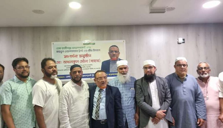 বিশিষ্ট ব্যাংকার ও সমাজসেবক মোঃ আখলাকুল মৌলা বাহারকে ২৪ জুন ২০২৫ লন্ডনের একটি অভিজাত রেস্তোরাঁয় এক বর্ণাঢ্য অনুষ্ঠানের মাধ্যমে সংবর্ধনা প্রদান করেছে যুক্তরাজ্য প্রবাসী বাংলাদেশিদের দুটি সংগঠন রেংঙ্গা হাজীগঞ্জ ডেভেলপমেন্ট ট্রাস্ট ও জয়তুন ওয়েলফেয়ার ট্রাস্ট। ব্যাংকিং ও শিক্ষা খাতে তাঁর অসামান্য অবদান এবং কমিউনিটি উন্নয়নে তাঁর নিরলস পরিশ্রমকে সম্মান জানিয়ে এই সংবর্ধনার আয়োজন করা হয়।মোঃ আখলাকুল মৌলা বর্তমানে সিলেট আম্বরখানা আল-আরাফাহ্ ইসলামী ব্যাংক পিএলসি শাখা’র ম্যানেজার ও হাজারী গ্রুপ ওয়েলফেয়ার সোসাইটির সভাপতি এবং ইউনিভার্সেল আইডিয়াল কলেজের দাতা সদস্য ও ম্যানেজমেন্ট কমিটির সিনিয়র সহ-সভাপতি হিসেবে দায়িত্ব পালন করছেন। অনুষ্ঠানে সভাপতিত্ব করেন বিশিষ্ট কমিউনিটি নেতা জয়তুন ওয়েলফেয়ার ট্রাস্টের সম্মানিত প্রধান পৃষ্ঠপোষক ও বিলেতের সু-পরিচিত ব্যক্তি বিশিষ্ট সমাজসেবক আব্দুল মজিদ (লাল মিয়া)। পরিচালনা করেন নিজামুল ইসলাম, পবিত্র কুরআন তেলাওয়াত করেন মাওলানা ছাদিকুর রাহমান। বক্তব্য রাখেন বীর মুক্তিযোদ্ধা ফয়জুর রহমান, যুক্তরাজ্য ব্রেন্ট কাউন্সিলের সাবেক মাননীয় মেয়র কাউন্সিলর পারভেজ আহমেদ। লন্ডন টাওয়ার হেমলেটস এর সাবেক কাউন্সিলর ও স্পিকার আহবাব হোসেন। কাউন্সিলার রেবেকা সুলতানা, হাফিজ মৌলানা জিলু খান, রেঙ্গা হাজীগঞ্জ ডেভেলপমেন্ট ট্রাস্টের সম্মানিত চেয়ারম্যান আব্দুল মুহিদ। মোহাম্মদ নাসির উদ্দিন, মৌলানা মিজানুল হক, নজরুল ইসলাম, রমজান আলী, আব্দুল সহিদ, শাহান চৌধুরী, আতিকুর রহমান, মনসুরুল হক, আখলাকুর রাহমান লুকু, রুবেল আহমেদ, খালেদ আহমেদ, আশরাফ আলী ছানা, শাহাব উদ্দিন প্রমুখ।বক্তারা মোঃ আখলাকুল মৌলা (বাহার)-এর কর্মজীবন, সততা, দায়িত্বশীলতা এবং জনসেবায় তাঁর অবদানের ভূয়সী প্রশংসা করেন। প্রবাসে থাকা বাংলাদেশিদের সঙ্গে তাঁর আন্তরিক যোগাযোগ এবং এলাকার উন্নয়নে ভূমিকার জন্য তাঁকে ধন্যবাদ ও কৃতজ্ঞতা জানানো হয়।ফুলেল শুভেচ্ছা ও সম্মাননা স্মারক প্রদান করে তাঁকে উষ্ণ অভিনন্দন জানানো হয়। এ সময় উপস্থিত জনতা করতালির মাধ্যমে তাঁর প্রতি ভালোবাসা ও শ্রদ্ধা প্রকাশ করেন। এই সংবর্ধনা অনুষ্ঠানের মাধ্যমে প্রবাসীদের সঙ্গে বাংলাদেশের জননেতা ও সমাজসেবকদের এক হৃদ্যতা ও মেলবন্ধন সৃষ্টি হয়। বক্তারা আশা প্রকাশ করেন, মোঃ আখলাকুল মৌলা (বাহার)-এর মত ব্যক্তিত্ব সমাজের উন্নয়নে আরও বলিষ্ঠ ভূমিকা রাখবেন। সভাপতির সমাপনী বক্তব্যের পর আনন্দ ঘন পরিবেশে ডিনারের মাধ্যমে অনুষ্ঠানের সমাপ্তি ঘোষণা করা হয়।