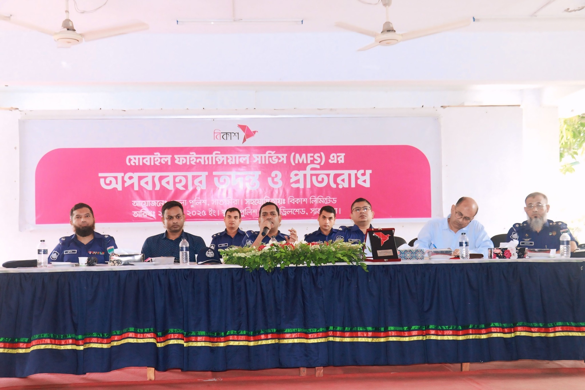 বুধবার ২৫ জুন ২০২৫ খ্রিষ্টাব্দ তারিখে সাতক্ষীরা জেলা পুলিশের আয়োজনে ও বিকাশ লিমিটেড এর সার্বিক সহযোগিতায় পুলিশ লাইন্স ড্রিলসেডে মোবাইল ফাইন্যান্সিয়াল সার্ভিস এম এফ এস এর অপব্যবহার তদন্ত ও প্রতিরোধ বিষয়ক কর্মশালা অনুষ্ঠিত হয়। উক্ত সভায় প্রধান অতিথি হিসেবে উপস্থিত ছিলেন সাতক্ষীরা জেলা পুলিশ পুলিশ সুপার মোহাম্মদ মনিরুল ইসলাম