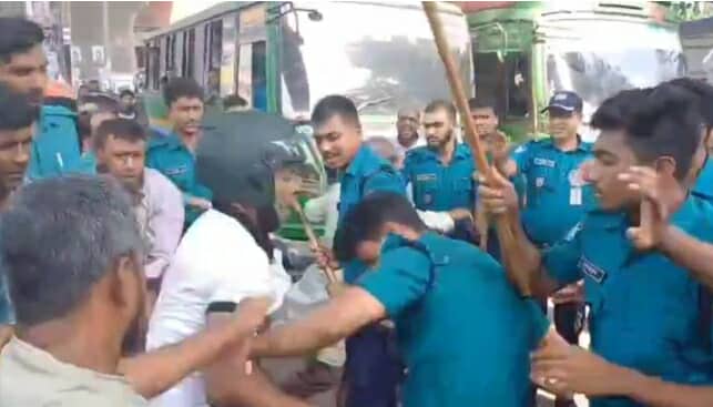মব সন্ত্রাস করে সাংবাদিকদের মারধর করেছে পুলিশের কতিপয় সদস্য। এতে অন্তত ৬ সাংবাদিককে পিটিয়ে রক্তাক্ত ও জখম করা হয়েছে। বুধবার (২৭ আগস্ট) দুপুরে রাজধানীর জাতীয় প্রেস ক্লাবের সামনে পুলিশ বক্সের ভেতর এ ঘটনা ঘটেছে।আহত সাংবাদিকরা হলেন- ইংরেজি দৈনিক নিউ নেশনের সিনিয়র রিপোর্টার শিমুল পারভেজ ও নোমান মোশারফ, বাংলাভিশন টিভির কেফায়েত শাকিল, ইউটিউবভিত্তিক আইটিভির মাল্টিমিডিয়া রিপোর্টার আলম। দৈনিক খোলা বাজার পত্রিকার সাংবাদিক রোজিনা বেগম, দৈনিক আমার সংগ্রাম পত্রিকার সাংবাদিক সপ্তমী মণ্ডল ঋতুসহ আহতরা ঢাকা মেডিকেল কলেজে চিকিৎসাসেবা নিয়েছেন।আহত সাংবাদিক কেফায়েত শাকিল যুগান্তরকে জানান, নিউ নেশনের শিমুল পারভেজ ও নোমান মোশারফকে পুলিশ সদস্যরা মারধর করছে দেখে ভিডিও করতে গেলে আমাকে প্রচণ্ড মারধর করে। ওই সময় মাল্টিমিডিয়া জার্নালিস্ট আলম ভিডিও করতে গেলে তাকেও মারধর করে পুলিশ সদস্যরা। পরে বাংলাভিশনের ক্যামেরাম্যান আনোয়ার এগিয়ে গেলে তার সঙ্গেও খারাপ ব্যবহার করে পুলিশ সদস্যরা। পরে তারা শাকিল ও নোমানকে ছেড়ে দেয়। ঘটনার সূত্রপাত সম্পর্কে তিনি জানান, প্রেস ক্লাব থেকে মোটরসাইকেলযোগে রাস্তা পার হওয়ার সময় যানজটের ভেতর একটি কালো রংয়ের প্রাইভেটকারের সঙ্গে সাংবাদিক শিমুলের মোটরসাইকেলের সামান্য ঘষা লাগে। এতে উভয়পক্ষের বাগবিতণ্ডার একপর্যায়ে প্রাইভেটকার আরোহীরা ওই সাংবাদিককে ঘুসি মারে এবং চাকু দিয়ে আঘাত করে। এ সময় প্রাইভেটকার চালক পুলিশ সদস্যদের ডেকে এনে ছিনতাইকারী বলে চিৎকার করে। তখন পুলিশ সদস্যরাও মব করে সাংবাদিকদের লাঠি দিয়ে পিটিয়ে আহত করে এবং টেনেহিঁচড়ে পুলিশ বক্সের ভেতরে এনে পুনরায় মারধর করে। তবে প্রাইভেটকারসহ আরোহীদের আটক করা হয়েছে। ঢাকা সাংবাদিক ইউনিয়নের সভাপতি শহিদুল ইসলাম যুগান্তরকে বলেন, পুলিশ সদস্যরা মব সৃষ্টি করে সাংবাদিকদেরকে পিটিয়েছে।এ ঘটনায় ঢাকা সাংবাদিক ইউনিয়নের পক্ষ থেকে দোষী পুলিশ সদস্যদের শাস্তির আওতায় আনতে বৃহস্পতিবার দুপুর ১২টা পর্যন্ত আলটিমেটাম দেওয়া হয়েছে। অন্যথায় সাংবাদিক ইউনিয়ন কঠোর কর্মসূচিতে দিতে বাধ্য হবে বলে জানান তিনি।