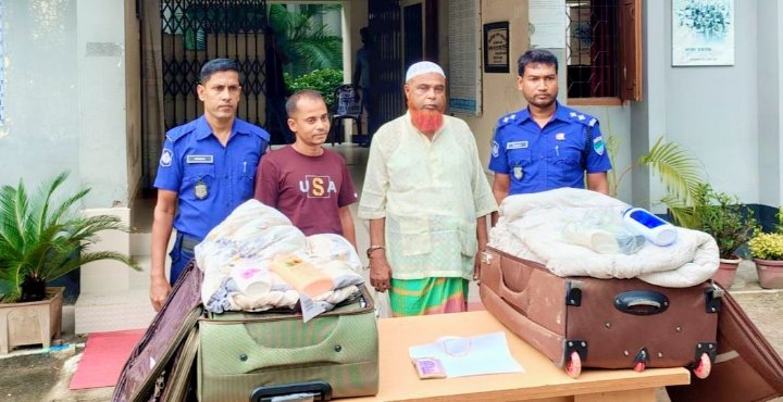 সৌদি আরবের রিয়াদে একই মালিকের প্রতিষ্ঠানে কর্মরত বরিশালের এক ব্যক্তির ১৯ লাখ টাকার সেনার গহনা ও মালামাল বাড়িতে পৌঁছে দেওয়ার নামে প্রতারণা করার সঙ্গে জড়িত থাকার অভিযোগে পুলিশ জামাই ও শ্বশুরকে গ্রেপ্তার করেছে।গতকাল শুক্রবার রাত সাড়ে ১১টার দিকে সাতক্ষীরার কালিগঞ্জ উপজেলার ইন্দ্রনগর গ্রাম থেকে তাদেরকে গ্রেপ্তার করা হয়। গ্রেপ্তারকৃতরা হলেন-সাতক্ষীরার কালিগঞ্জ উপজেলার ইন্দ্রনগর গ্রামের লোকমান মোড়লের ছেলে ছিদ্দিক মোড়ল (৫৩) তার জামাতা একই গ্রামের মোবারেক আলী শেখের ছেলে হাবিবুল্লাহ ওরফে মিঠু (৩৭)।বরিশাল জেলার বাবুগঞ্জ উপজেলার বাহেরচর গ্রামের আবুল বাশার চুন্নুর ছেলে বেলাল হোসেন জানান, সাতক্ষীরার কালিগঞ্জ উপজেলার তারালী ইউনিয়নের নওয়াপাড়া গ্রামের সারাকাত আলীর ছেলে আল মামুন হোসেনের(৩১) সঙ্গে সৌদি আরবের রিয়াদে একই মালিকের প্রতিষ্ঠানে কাজ করার সুবাদে তার সুস্পর্ক তৈরি হয়। আল মামুন ওই প্রতিষ্ঠানের ফুড ডেলিভারিম্যান হিসেবে কাজ করতো। তিনি (মামুন) ওই মালিকের (মামা) একটি দোকানের ম্যানেজার হিসেবে কর্মরত আছেন। আল মামুন বাড়িতে যাওয়ার বিষয়টি তাকে জানালে তিনি কোন মালামাল বাড়িতে পাঠাতে চাইলে তার কাছে দিতে পারেন বলে তাকে জানান। একপর্যায়ে তিনি ১০৮ গ্রাম ওজনের ৫টি সোনার চুরি, একটি আংটি ও একটি নেকলেস যার বাজার মূল্য ১৬ লাখ টাকা ও কসমেটিকস, কাপড়সহ দুটি লাগেজ ভর্তি তিন লাখ টাকার জিনিসপত্র গত ৩১ আগষ্ট মামুন বাংলাদেশে যাওয়ার আগে তার কাছে পৌঁছে দেন। পহেলা সেপ্টেম্বর তিনি বাড়িতে খোঁজ নিয়ে জানতে পারেন যে কোন মালামাল সেখানে পাঠানো হয়নি। আল মামুনের সঙ্গে যোগাযোগের চেষ্টা করলে তার ফোন বন্ধ পাওয়া যায়। একপর্যায়ে তিনি বাড়ি ফিরে এসে ১২ সেপ্টম্বর রাত ১১টার দিকে নওয়াপাড়া গ্রামে আল আমিনের বাড়িতে যান। আগে থেকে খবর পেয়ে আল মামুন বাড়িতে আসেনি। একপর্যায়ে গত শুক্রবার রাত ১০টার দিকে তিনি আসামী ছিদ্দিক মোড়লের বাড়িতে যেয়ে আসামী আল মামুন ও হাবিবুল্লাহ মিঠুসহ তিন/চারজন আসামীকে সেখানে দেখতে পান। এ সময় আসামীরা তাকে চলে যেতে বলে। বেশি বাড়াবাড়ি করলে খুন করার হুমকি দেওয়া হয়। এরই মধ্যে আল মামুন কৌশলে পালিয়ে যায়। পুলিশ ছিদ্দিক মোড়ল ও তার জামাতা মিঠুকে নলতা এলাকা থেকে শুক্রবার রাতে সাড়ে ১১ টার দিকে আটক করে ও তাদের দেওয়া তথ্য মতে তার ব্যবহৃত লাগেজসহ কিছু মালামাল উদ্ধার করে। এদিকে স্থানীয় দায়িত্বশীল সূত্র জানায়, ছিদ্দিক মোড়ল একজন কুখ্যাত চোরাচালানি। তার আদি বাড়ি কালিগঞ্জ উপজেলার শীতলপুরে। পরবর্তীতে তিনি শ্বশুর বাড়িতে এসে ইন্দ্রনগরে বাড়ি করেন। মেয়েকে বিয়ে দেন একই গ্রামের হাবিবুল্লাহ মিঠুর সাথে। মিঠু বর্তমানে আহম্মদ শে