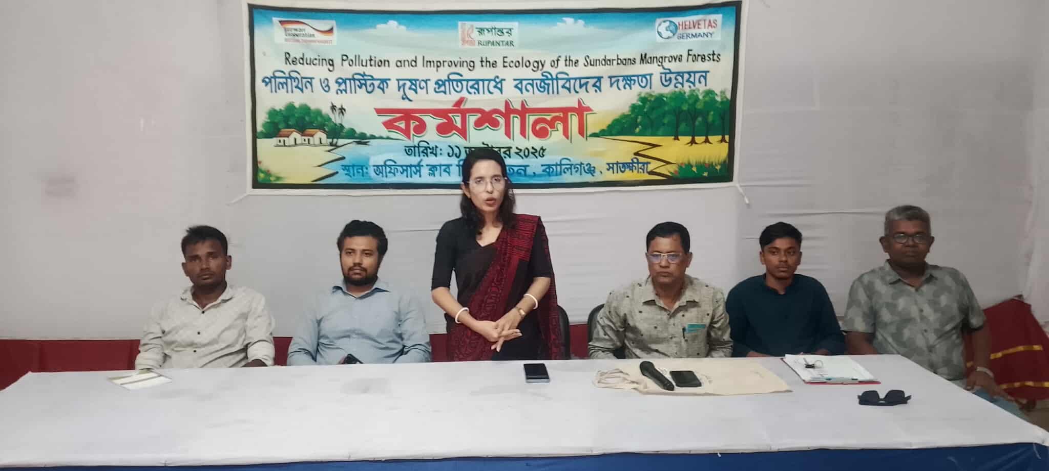 সাতক্ষীরার কালিগঞ্জ উপজেলায় সুন্দরবনের পরিবেশ রক্ষায় এবং প্লাস্টিক ও পলিথিন দূষণ প্রতিরোধে বনজীবীদের সচেতনতা ও দক্ষতা বৃদ্ধির লক্ষ্যে দিনব্যাপী কর্মশালা অনুষ্ঠিত হয়েছে।শনিবার ১১ অক্টোবর সকালে কালিগঞ্জ অফিসার্স ক্লাব মিলনায়তনে রূপান্তরের আয়োজনে এবং জার্মান ডেভেলপমেন্ট কো-অপারেশন (GIZ) ও হেলভেটাস জার্মানির সহায়তায় এই কর্মশালা অনুষ্ঠিত হয়।কর্মশালায় প্রধান অতিথির বক্তব্যে উপজেলা নির্বাহী কর্মকর্তা অনুজা মণ্ডল বলেন:সুন্দরবনকে বাঁচাতে হলে আমাদের প্লাস্টিক ও পলিথিনের ব্যবহার কমিয়ে আনতে হবে। এটি শুধু বন নয়, আমাদের ভবিষ্যৎ প্রজন্মের জন্যও হুমকি হয়ে দাঁড়িয়েছে।সভাপতির বক্তব্যে রূপান্তরের জেলা সমন্বয়কারী গোলাম কিবরিয়া বলেন বনজীবীরা পরিবেশের সরাসরি অংশীদার। তাদের দক্ষতা ও সচেতনতা বৃদ্ধির মাধ্যমে সুন্দরবনকে দূষণমুক্ত করা সম্ভব।বিশেষ অতিথির বক্তব্য রাখেন উপজেলা যুব উন্নয়ন কর্মকর্তা এস এম আকরাম হোসেন। এছাড়া উপস্থিত ছিলেন টেনার প্রতিনিধি খালিদ লামি যুব ফোরামের আহবায়ক রফিকুল ইসলাম, সদস্য সচিব মারুফ হোসেন ।কর্মশালায় ৩৫ জন বনজীবী অংশগ্রহণ করেন এবং প্লাস্টিক ও পলিথিনের ক্ষতিকর দিক বিকল্প ব্যবহার ও দূষণ প্রতিরোধে করণীয় নিয়ে আলোচনা হয়।