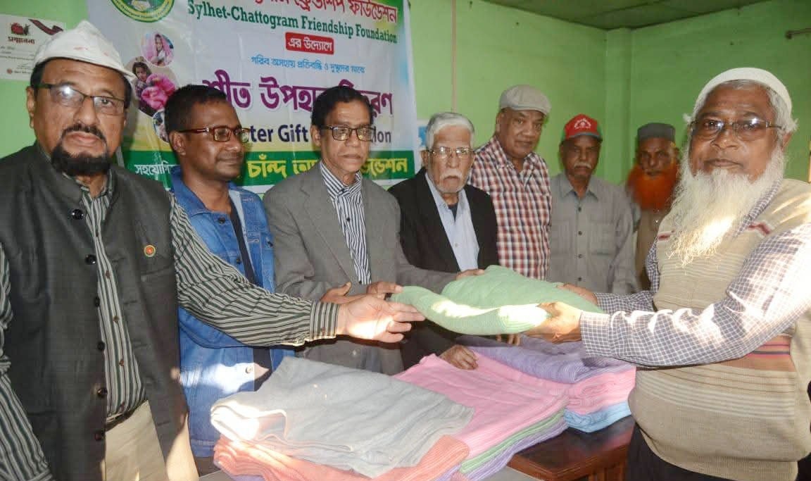 সিলেট-চট্টগ্রাম ফ্রেন্ডশিপ ফাউন্ডেশনের উদ্যোগে ও হাজী চাঁন্দ আলী ফাউন্ডেশনের সহযোগিতায় ১২ জানুয়ারি, সোমবার, বিকাল ৪ টায় নগরীর পশ্চিম খুলশী জালালাবাদ মুক্তিযোদ্ধা কলোনীতে বীর মুক্তিযোদ্ধা পরিবারের মাঝে শীতবস্ত্র বিতরণ করা হয়।সিলেট-চট্টগ্রাম ফ্রেন্ডশিপ ফাউন্ডেশনের প্রতিষ্ঠাতা সভাপতি মো. শহিদুল ইসলামের সভাপতিত্বে এবং গ্রীণ চট্টগ্রাম এ্যালায়েন্সের সদস্য সচিব ও সাংবাদিক স ম জিয়াউর রহমানের সঞ্চালনায় শীতবস্ত্র বিতরণ অনুষ্ঠানে উপস্থিত ছিলেন বীর মুক্তিযোদ্ধা শামসুদ্দোহা আলী, বীর মুক্তিযোদ্ধা ফেরদৌস হাফিজ খান রুমু, বীর মুক্তিযোদ্ধা আজিজুল হক, বীর মুক্তিযোদ্ধা রাখাল চন্দ্র ঘোষ, বীর মুক্তিযোদ্ধা মো. সাহাদুল হক, বীর মুক্তিযোদ্ধ বি কম সিদ্দিক, বীর মুক্তিযোদ্ধা রমিজ উদ্দিন আহমেদ, বীর মুক্তিযোদ্ধা এম এ হাকিম চৌধুরী, বীর মুক্তিযোদ্ধা ইঞ্জিনিয়ার শাহ আলম, বীর মুক্তিযোদ্ধা মোহাম্মদ ইউসুফ, বীর মুক্তিযোদ্ধা ইঞ্জিনিয়ার মো. মুজিবুর রহমান, বীর মুক্তিযোদ্ধা এস এম লেয়াকত হোসেন, সাংবাদিক নজিব চৌধুরী, আকতার হোসেন শাকিল, গ্রীণ চট্টগ্রাম এ্যালায়েন্সের বৈজ্ঞানিক সদস্য ইঞ্জিনিয়ার মোহাম্মদ ইমরান, মোঃ মুজিবুর রহমান প্রমুখ।এ সময় বক্তারা বলেন, বীর মুক্তিযোদ্ধারা জাতির শ্রেষ্ঠ সন্তান। তাঁদের জীবনজয়ী যুদ্ধের কারণে আজকের বাংলাদেশ। বাংলাদেশের ইতিহাস ও বাংলাদেশ যতদিন থাকবে, তাঁদের অবদান ও কীর্তি অক্ষয়-অমর হয়ে থাকবে। বীর মুক্তিযোদ্ধারা সহযোগিতা-সম্মান জানাতে পেরে সিলেট-চট্টগ্রাম ফ্রেন্ডশিপ ফাউন্ডেশন গর্বিত।আলোচনা শেষে সংগঠনের নেতৃবৃন্দ বীর মুক্তিযোদ্ধা ও তাদের পরিবারের সদসদের হাতে কম্বল তুলেদেন।