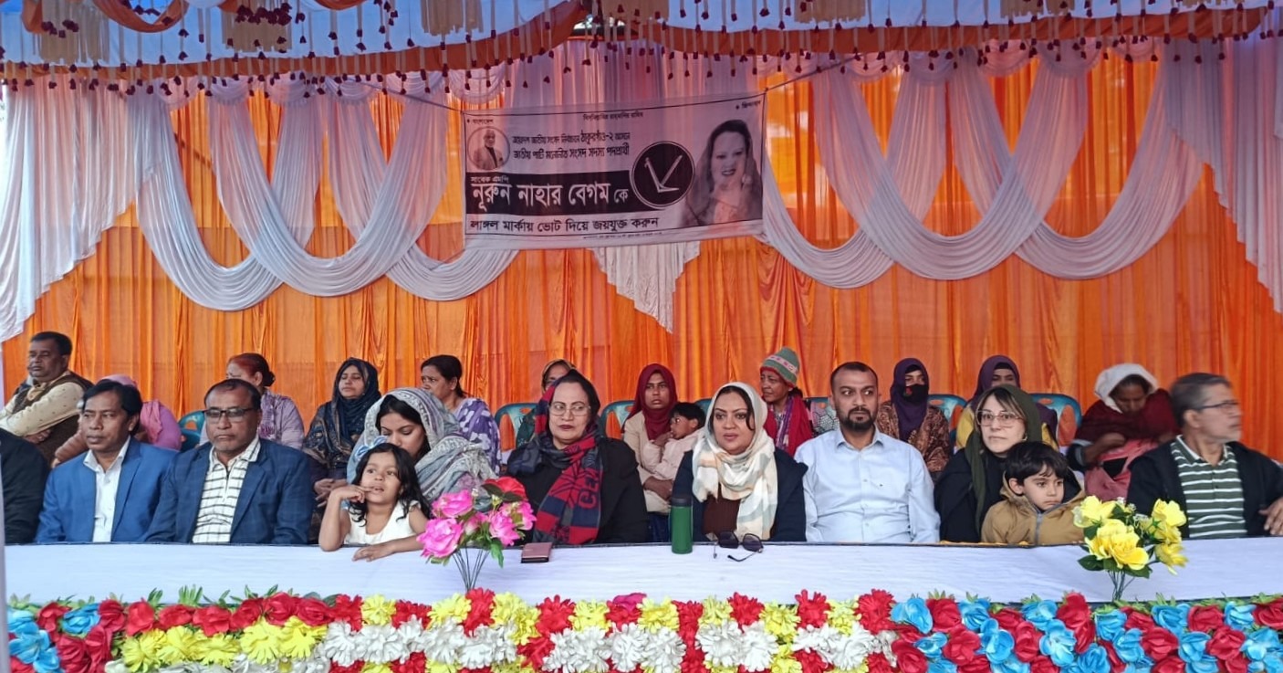 প্রার্থীর পুত্র ব্যারিস্টার আরিফ হাসান, কন্যা ইঞ্জিনিয়ার নিলুফার ইয়াসমিন ববি ও ব্যারিস্টার মেহবুবা অলি। এলাকায় কর্মসংস্থান বিনির্মাণের জন্য ভোটারদের ভোট চাচ্ছেন। বালিয়াডাঙ্গী উপজেলা জাতীয় পার্টির উদ্যোগে লাহিড়ী হাট জনসভা কানায় কানায় পূর্ণ হয়। প্রধান অতিথির বক্তব্যে নূরুন নাহার বেগম বলেন। আপনারা জানেন আমার পরিবার একটি রাজনৈতিক পরিবার এই এলাকার একাধিক বারের সংসদ আমার মামা আপনাদের সকলের ভালোবাসার মানুষ আলহাজ্ব মোহাম্মদ দবিরুল ইসলাম এমপি, সুদীর্ঘ ৩০ টি বছর ধরে আমি জাতীয় পার্টির রাজনীতির সাথে জড়িত আপনাদের ভালোবাসায় গত দ্বাদশ জাতীয় সংসদ নির্বাচনে আমি এই আসনে এমপি প্রার্থী ছিলাম আপনারা আমাকে অনেকেই ভোট দিয়েছিলেন এমপি নির্বাচিত না হতে পারলেও সংরক্ষিত আসনে আমি এমপি হয়েছিলাম এবং আপনাদের পাশে থাকার চেষ্টা করেছিলাম কিন্তু গত পাঁচই আগস্ট ছাত্র জনতার গণঅভ্যুত্থানে এদেশ আবার নতুন করে স্বাধীন হয়েছে।আগামী ১২ তারিখ আপনারা সকলে এদেশের মানুষের পল্লীবন্ধু হোসেন মোহাম্মদ এরশাদ এর জাতীয় পার্টির লাঙ্গল মার্কায় ভোট দিয়ে ঠাকুরগাঁ দুই আসনের সেবা করার সুযোগ দিন।আমি আপনাদেরই মেয়ে আপনারা জানেন আমার পিতা তার জীবন দশায় মানুষের সেবা করে গেছেন আমি চাই পাশে থাকতে আপনারা যদি আমাকে নির্বাচিত করেন কথা দিচ্ছি এই এলাকায় আপনাদের কর্মসংস্থানের জন্য আমি গার্মেন্টস ফ্যাক্টরি তৈরি করব। শুধু তাই নয় এই অবহেলিত জনপদকে একটি উন্নয়নের রোল মডেল হিসাবে তৈরি করব আপনারা সকলে মিলেমিশে আসুন দল মত নির্বিশেষে আগামী ১২ তারিখ লাঙ্গল মার্কায় ভোট দিন।কিছু দল আমাদেরকে দোসর বলে আমাদের দলের নিবন্ধন নিয়ে নিতে চাই আপনারা জানেন জাতীয় পার্টির পল্লীবন্ধু হোসেন মোহাম্মদ এরশাদ এর নিজ হাতে গড়ায় দল ১৯৫২ সালের ভাষা আন্দোলন ১৯৭১ সালের মহান মুক্তিযুদ্ধ সর্বশেষ ২৪ এর গণঅভ্যুত্থানে আমাদের দলের সর্বোচ্চ ভূমিকা ছিল।আমার এই দলে কোন চাঁদাবাজের স্থান নেই আমার এই দল ক্ষমতায় আসলে কথা দিলাম ঠাকুরগাঁও ২ আসনকে একটি উন্নয়নের আসন হিসেবে রুপান্তরিত করব। স্বাগত বক্তব্যে ব্যারিস্টার আরিফ হোসেন বলেন। আমার মা বেগম নুরুন্নাহার একজন সাহসী নারী আমরা টাকার জন্য রাজনীতি করি না আমরা চাই মানুষের উন্নয়ন করতে আপনারা আমাদের কে নির্বাচিত করলে অন্য কোন রাজনৈতিক দলের মত আমার এই দল চাঁদাবাজি সন্ত্রাসী করবে না,এটি পল্লীবন্ধু হোসেন মোহাম্মদ এরশাদের দল। আমার মা নির্বাচিত হলে এই এলাকায় একটি গার্মেন্টস ফ্যাক্টরি করব আমরা যেটাতে হাজার হাজার মানুষের কর্মসংস্থান সৃষ্টি হবে,আপনারা ইতিমধ্যে দেখেছেন আমার নানা এই এলাকার উন্নয়নের উপকার সাতবারের সাবেক সংসদ সদস্য আলহাজ্ব মোহাম্মদ দবির