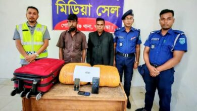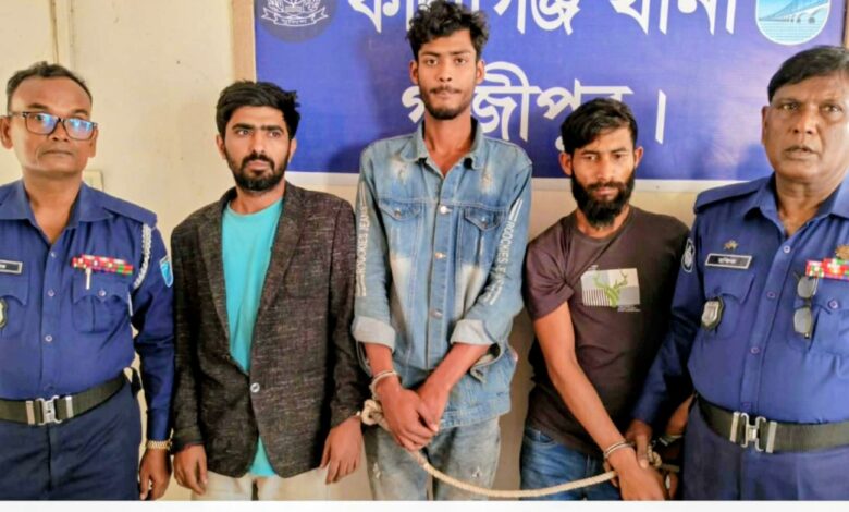 গাজীপুরের কালীগঞ্জে থানা পুলিশের রাত্রিকালীন কিলো-৫ ও যৌথবাহিনী মাদক বিরোধী বিশেষ অভিযানে ৩৮০ পিস ইয়াবা, ৪০ গ্রাম গাঁজা এবং মাদক বিক্রির নগদ ৫৬ হাজার ২২০ টাকা সহ ৩ জন মাদক ব্যবসায়ীকে গ্রেফতার করা হয়েছে।থানা সূত্রে জানা যায়, মঙ্গলবার (১৮ ফেব্রুয়ারী) গভীর রাতে কালীগঞ্জ থানার রাত্রিকালীন কিলো-৫ ও যৌথবাহিনী কালীগঞ্জ পৌরসভার দেওপাড়া এলাকাস্থ সেভেন রিংস সিমেন্ট কোম্পানির ৬নং গেইট সংলগ্ন গুদারাঘাট রোডের পাকা রাস্তার উপর মাদক বিরোধী বিশেষ অভিযান পরিচালনা করেন। এ সময় ৩৮০ পিস ইয়াবা, ৪০ গ্রাম গাঁজা এবং মাদক বিক্রির নগদ ৫৬ হাজার ২২০ টাকা সহ ৩ জন আসামিকে গ্রেফতার করা হয়। গ্রেফতারকৃতরা হলেন, দেওপাড়া গ্রামের কবির মিয়ার ছেলে আল-আমিন (৩১), আনোয়ার হোসেনের ছেলে আবিদ হাসান (৩১) আব্দুল বাতেনের ছেলে সিয়াম আহমেদ (২১)।গ্রেফতারকৃত আসামিদের বিরুদ্ধে মাদকদ্রব্য নিয়ন্ত্রণ আইন, ২০১৮ এর ৩৬(১) সারণির ১০(ক)/৩৬(১) সারণির ১৯(ক) ধারায় কালীগঞ্জ থানায় ১৭(২)২৬ নং মামলা রুজু করা হয়। বুধবার দুপুরে আসামীদের গাজীপুর আদালতে পাঠানো হয়েছে। কালীগঞ্জ থানার অফিসার ইনচার্জ (ওসি) মোঃ জাকির হোসেন বলেন, গ্রেফতারকৃত আসামিদের বিরুদ্ধে থানায় মামলা রুজু করা হয়েছে। দুপুরে আসামীদের গাজীপুর আদালতে পাঠানো হয়েছে। মাদকমুক্ত সমাজ গড়তে আইনশৃঙ্খলা বাহিনীর অভিযান অব্যাহত থাকবে।