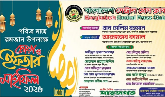 মানবিকতার সেবায় বাংলাদেশ সেন্ট্রাল প্রেসক্লাব: সাভারে ইফতার ও দোয়া মাহফিলের আয়োজন। পবিত্র মাহে রমজানের বরকত ও সিয়াম সাধনার এই মাসে অসহায় ও সাধারণ মানুষের পাশে দাঁড়াতে এক ব্যতিক্রমী ও মানবিক উদ্যোগ গ্রহণ করেছে বাংলাদেশ সেন্ট্রাল প্রেসক্লাব (BCPC)। আজ সাভার ক্যান্টনমেন্ট সংলগ্ন উত্তর ডেন্ডাবর, বান্দুর হাজীর পুকুরপাড় (পল্লী বিদ্যুৎ) এলাকায় সংগঠনটির উদ্যোগে ইফতার বিতরণ, দোয়া ও মাহফিল অনুষ্ঠিত হতে যাচ্ছে। বাংলাদেশ সেন্ট্রাল প্রেসক্লাব শুধুমাত্র সংবাদ কর্মীদের সংগঠন হিসেবেই নয়, বরং সামাজিক দায়বদ্ধতা থেকে এই ইফতার মাহফিলের আয়োজন করেছে। পবিত্র রমজান উপলক্ষে দরিদ্র ও মেহনতি মানুষের মাঝে ইফতার পৌঁছে দেওয়াই এই আয়োজনের অন্যতম উদ্দেশ্য।অনুষ্ঠানের বিশদ বিবরণ: