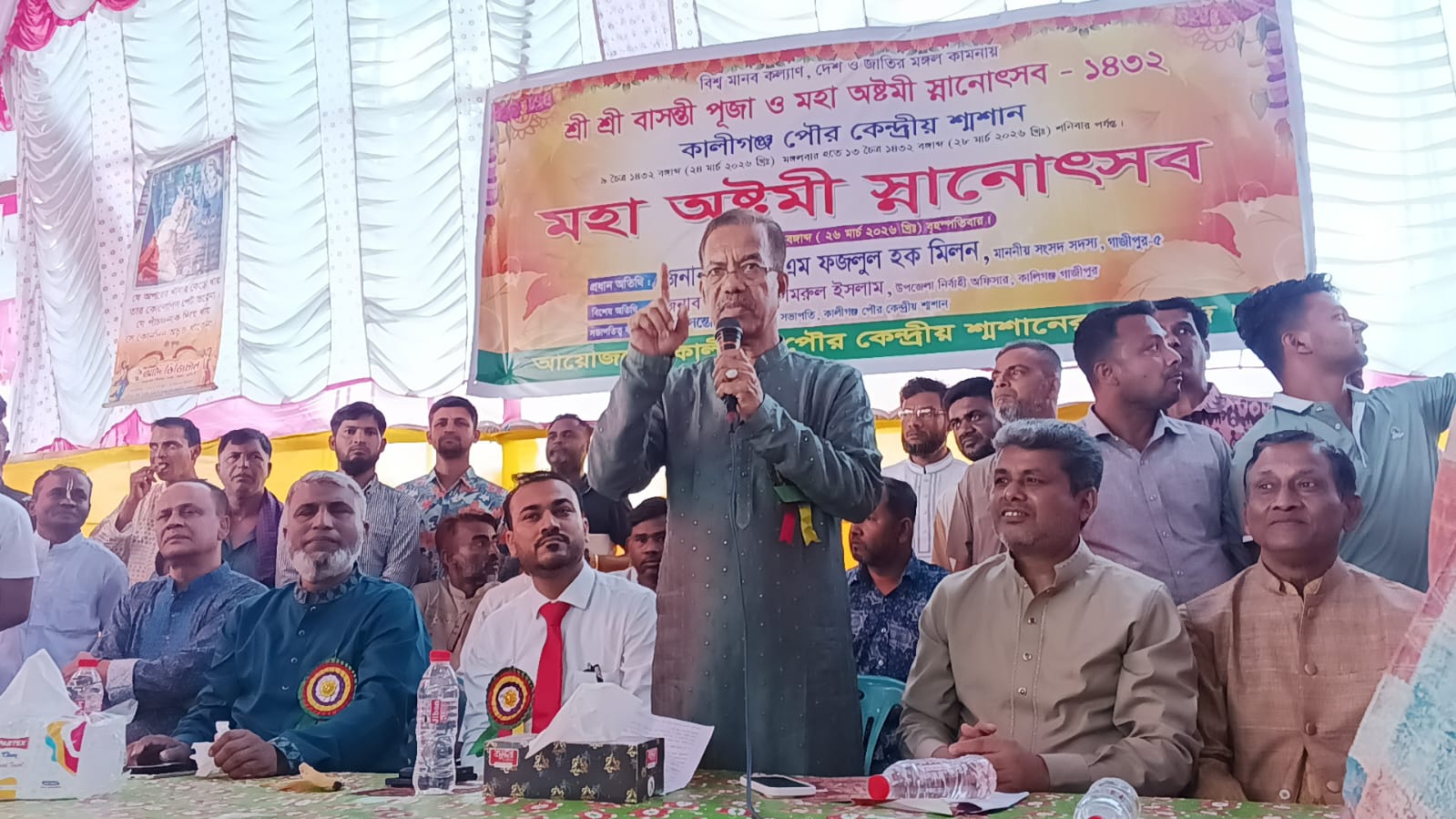 গাজীপুরের কালীগঞ্জে মহাষ্টমী উপলক্ষে শীতলক্ষ্যা নদীতে বৃহস্পতিবার (২৬শে মার্চ) অনুষ্ঠিত হয়েছে সনাতন ধর্মাবলম্বীদের পুণ্যস্নান। ভোরের নরম আলো আর কুয়াশার চাদর ভেদ করে সূর্য ওঠার আগেই কালীগঞ্জ পৌর শ্মশান মন্দির পরিচালনা কমিটির উদ্যেগে শীতলক্ষ্যা নদীতে সনাতন ধর্মাবলম্বীদের মহাষ্টমীর পুণ্যস্নান অনুষ্ঠিত হয়েছে। কালীগঞ্জ পৌর কেন্দ্রীয় শ্মশানের ভক্তবৃন্দের আয়োজনে বিশ্ব মানব কল্যাণে দেশ ও জাতির মঙ্গল কামনায় শ্রী শ্রী বাসন্তী পূজা ও মহা অষ্টমী স্নানোৎসব অনুষ্ঠিত হয়। উক্ত অনুষ্ঠানে প্রধান অতিথির আসন অলংকৃত করেন গাজীপুর-৫ আসনের মাননীয় সংসদ সদস্য একে এম ফজলুল হক মিলন (এমপি) এবং বিশেষ অতিথি হিসেবে উপস্থিত ছিলেন,কালীগঞ্জ উপজেলা নির্বাহী কর্মকর্তা এটিএম কামরুল ইসলাম। সভায় সভাপতিত্ব করেন কালীগঞ্জ পৌর কেন্দ্রীয় শ্মশান কমিটির সভাপতি বাবু সন্তোষ চন্দ্র রায়। শ্মশান কমিটির সহ-সাধারণ সম্পাদক মানস কুমার গুণ অতিথিবৃন্দের শুভেচ্ছা জানিয়ে শ্মশান ঘাট নির্মাণের, শ্মশানের জায়গা বৃদ্ধি ও নির্মাণাধীন ভক্ত নিবাসের অসমাপ্ত কাজ সমাপ্তীকরণের বিষয়গুলো তুলে ধরেন। অনেকেই পরিবার-পরিজনসহ অংশ নিয়ে এই আয়োজনকে এক অনন্য মিলনমেলায় পরিণত করেন, যেখানে ভক্তি আর আনন্দ মিলেমিশে সৃষ্টি করে এক অপূর্ব পরিবেশ। স্নান শেষে ভক্তরা ছুটে যান কালীগঞ্জ ঐতিহ্যবাহী পৌর শ্মশান কেন্দ্রীয় মন্দিরে। সেখানে দিনব্যাপী পূজার্চনা, ভোগ নিবেদন এবং প্রসাদ বিতরণের মধ্য দিয়ে চলে ধর্মীয় আনুষ্ঠানিকতা। ভক্তদের উপস্থিতিতে মন্দির প্রাঙ্গণ হয়ে ওঠে প্রাণচঞ্চল ও উৎসবমুখর। এই ধর্মীয় উৎসবকে ঘিরে মন্দির সংলগ্ন এলাকায় বসেছে বর্ণিল মেলা। মেলায় শিশুদের জন্য রঙিন খেলনা, নানা ধরনের মিষ্টান্ন ও দেশীয় খাবারের দোকান সাজিয়ে বসেছেন বিক্রেতারা। ক্রেতা-দর্শনার্থীদের ভিড় আর বিক্রেতাদের প্রাণবন্ত হাঁকডাকে মেলা প্রাঙ্গণ জমে ওঠে প্রাণের উচ্ছ্বাসে।স্থানীয়দের মতে, প্রতিবছরের মতো এবারও শান্তিপূর্ণ ও আনন্দঘন পরিবেশে অনুষ্ঠিত হয়েছে মহাষ্টমীর পুণ্যস্নান। ধর্মীয় অনুশাসনের পাশাপাশি এ আয়োজন হয়ে উঠেছে সাম্প্রদায়িক সম্প্রীতি ও সামাজিক বন্ধনের এক উজ্জ্বল নিদর্শন।