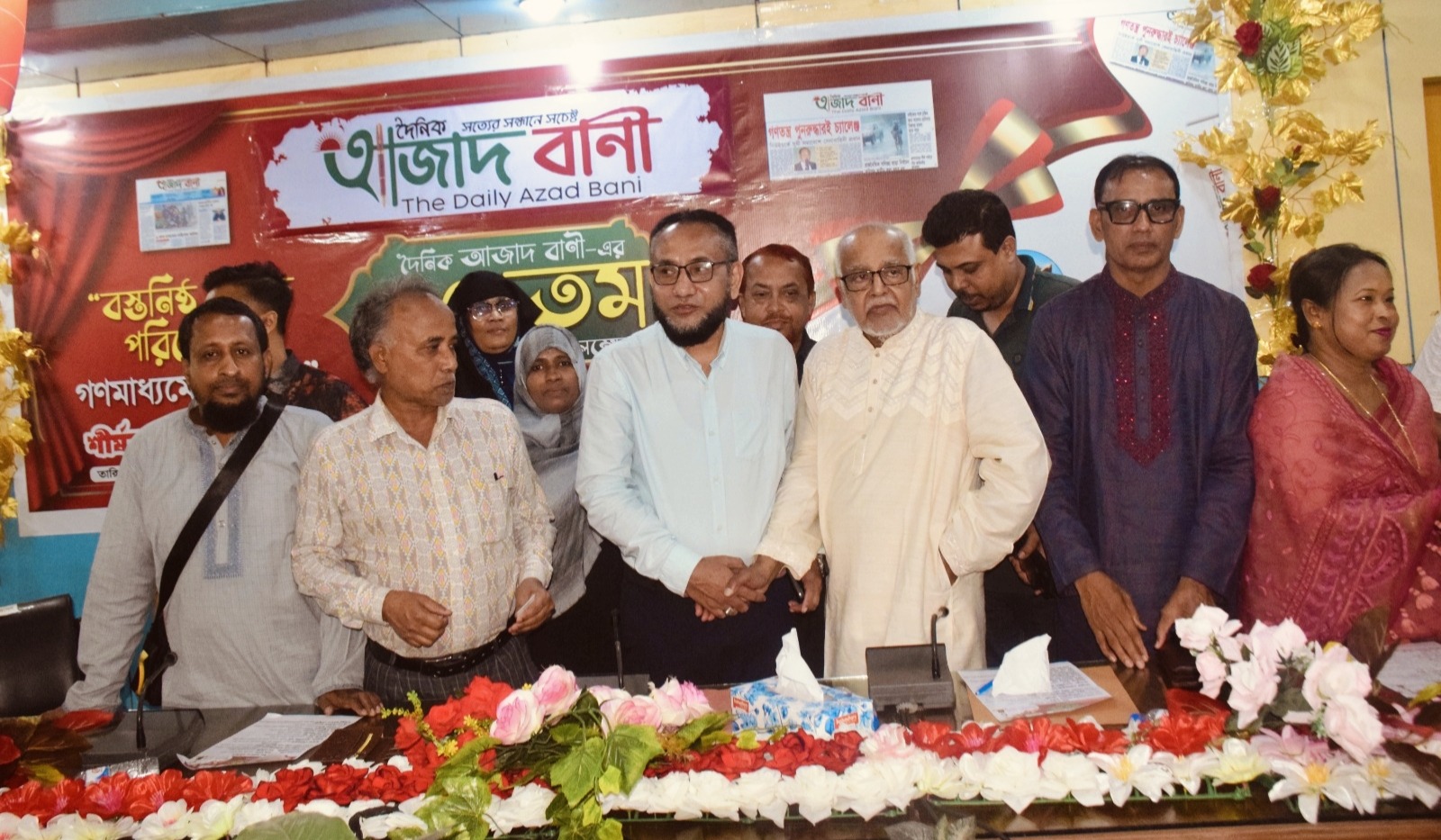 সত্যের সন্ধানে সচেষ্ট দৈনিক আজাদ বাণী পত্রিকার উদ্দ্যোগে ৪ এপ্রিল ২০২৬, শনিবার বিকাল ৫ টায় রাজধানীর শিশু কল্যাণ পরিষদ হলে গোল টেবিল বৈঠকে ও বস্তুনিষ্ঠ সংবাদ পরিবেশনে গণ মাধ্যমের ভূমিকা শীর্ষক আলোচনা সভা ও কবিতা আবৃত্তি অনুষ্ঠিত হয়েছে। সভাপতিত্বে দৈনিক আজাদ বাণী’র প্রকাশক ও সম্পাদক লায়ন এইচ এম ইব্রাহিম ভৃইয়া। প্রধান অতিথি হিসেবে উপস্থিত ছিলেন সাবেক মন্ত্রী, বিশিষ্ট সাংবাদিক ও গবেষক সৈয়দ দিদার বখত, প্রধান আলোচক সাবেক তথ্য ও গবেষণা সম্পাদক, বাংলাদেশ জাতীয়তাবাদী দল বিএনপি’র রেজাবুদ্দৌলা চৌধুরী। আন্তর্জাতিক প্রবাসী মানবাধিকার ফাউন্ডেশনের চেয়ারম্যান এ এইচ এম মনিরুজ্জামান। নিচিচা চেয়ারম্যান যুবরাজ খান। ব্রেন্ড এন্ড লাইফ হাসপাতালের পরিচালক মোঃ ফখরুল ইসলাম, দৈনিক স্বদেশ বিচিত্রা প্রকাশক ও সম্পাদক কবি অশোক ধর। সিলেট-চট্টগ্রাম ফ্রেন্ডশিপ ফাউন্ডেশন, কেন্দ্রীয় কমিটি’র সাংগঠনিক সচিব কবি মহিবুর রহমান চৌধুরী, মানবাধিকার ব্যক্তিত্ব মনিরুল ইসলাম মনির প্রমুখ। মহিবুর রহমান চৌধুরী বলেন, বস্তুনিষ্ঠ সংবাদ পরিবেশনে গণ মাধ্যমের ভূমিকা খুব গুরুত্বপূর্ণ। ভালো, যোগ্য ব্যক্তি কে সংবাদ পরিবেশনে নিয়োগ করার আহবান জানাই। সাংবাদিকদের কলমের মাধ্যমে একটি দেশ ও একটি সমাজ অনেক ক্ষেত্রে আলোকিত হয়। শিক্ষকদের উদ্দেশ্যে আরোও বলেন, সরকারি প্রাথমিক বিদ্যালয়ের সহকারী শিক্ষকরা দীর্ঘদিন যাবত পদোন্নতি বঞ্চিত, শিক্ষকরা যে বেতন পান তা দিয়ে সংসার চালাতে হিমশিম খেতে হচ্ছে। বাংলাদেশ সরকার শিক্ষকদের কল্যাণে একটি সম্মানজনক বেতন কাঠামো করার জন্য আকুল আবেদন জানাচ্ছি। বেশিরভাগ শিক্ষক ঋণগ্রস্থ। তিনি শিক্ষকদের কল্যাণে একটি কল্যাণ ট্রাস্ট গঠন করে এই ঋণের বোঝা থেকে রক্ষা করার অনুরোধ জানাচ্ছি। আর বেশিরভাগ মহিলা শিক্ষক অনেক দূর দূরান্তে শিক্ষকতা করছেন, বদলী নীতিমালা সহজ করে মহিলা শিক্ষকদের অগ্রাধিকার দেওয়ার জন্য আহবান জানাচ্ছি।এসময় বক্তারা বস্তুনিষ্ঠ সংবাদমাধ্যম এর প্রতি বেশি গুরুত্ব আরোপ করেন।