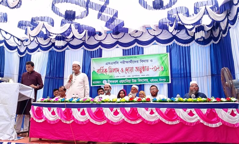 চাঁদপুরের হাইমচর উপজেলার ঐতিহ্যবাহী নীলকমল ওছমানিয়া উচ্চ বিদ্যালয়ের ২০২৬ সালের এসএসসি পরীক্ষার্থীদের বিদায় ও দোয়া অনুষ্ঠান সম্পন্ন হয়েছে।