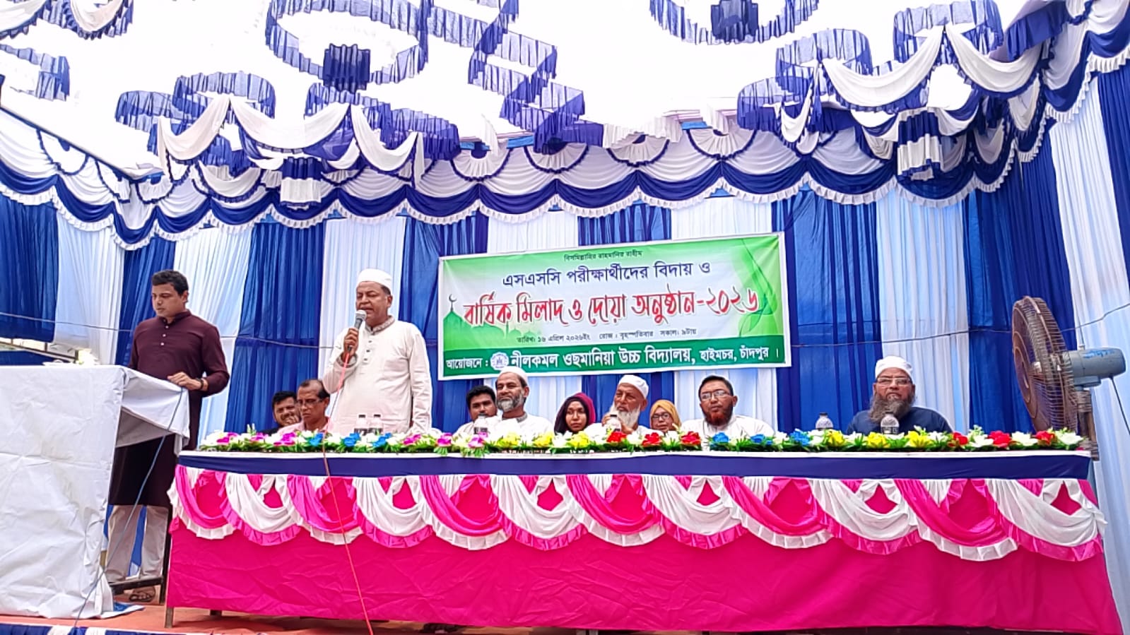 চাঁদপুরের হাইমচর উপজেলার ঐতিহ্যবাহী নীলকমল ওছমানিয়া উচ্চ বিদ্যালয়ের ২০২৬ সালের এসএসসি পরীক্ষার্থীদের বিদায় ও দোয়া অনুষ্ঠান সম্পন্ন হয়েছে।