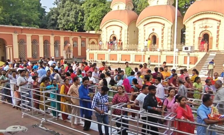 আজ ১৬ই এপ্রিল বৃহস্পতিবার, কলকাতার দক্ষিণেশ্বর মন্দিরে ১৫ ই এপ্রিল নতুন নববর্ষের পূজো দিতে ভোর থেকে ভক্তদের যনজোয়ার, ঘন্টার পর ঘন্টা পূজো দেওয়ার জন্য লাইনে দাঁড়িয়ে। একদিকে নববর্ষের ছুটি অন্যদিকে হাল খাতা, তাই ভক্তরা লক্ষ্মী গণেশ আর জাবদা খাতা হাতে নিয়ে মন্দিরে পুজো দিতে লাইনে অপেক্ষা করছেন,কখন মায়ের কাছে পূজো দেবেন।১লা বৈশাখ ১৪৩৩ একদিকে বাঙালিদের কাছে একটা বড়ো উৎসব, নতুন জামা আর ভালোমন্দ খাওয়া সবাই মিলে একটু বেরিয়ে আনন্দ উপভোগ করা, মুখের স্বাদ পাল্টানো, অন্যদিকে ব্যবসায়ীরা এই দিনটিতে লক্ষ্মী ও গনেশের মূর্তি ও যাবদা খাতা নিয়ে মন্দিরে পুজো দিতে যান, মায়ের কাছে মঙ্গল কামনার জন্য, ব্যবসার শ্রীবৃদ্ধি কামানা করার জন্য এবং হাল খাতার মাধ্যমে ক্রেতাদের মিষ্টি মুখ করানোর জন্য, এবং একবছরের লেন দেন এর হিসাব মিটিয়ে নতুন করে খাতা খোলার জন্য।এর সাথে সাথে মায়ের কাছে প্রার্থনা জানাচ্ছেন যাতে কিছুটা মূল্য বৃদ্ধি কমে, এমনকি সামনে নির্বাচন, কোনো রকম অশান্তি দাঙ্গা না ঘটে, শাস্তি পূর্ণ ভাবে নির্বাচন হয়, বাংলায় যেনো শান্তি ফিরে আসে। মন্দিরে জনযোয়ার এর ফলে প্রশাসনের অফিসাররাও হিমশিম খাচ্ছেন ভক্তদের সামলাতে। এবং পূজো দিতে এসে যাতে কোনো রকম দূর ঘটনা না ঘটে সেই দিকেও নজর রাখছেন। তবে যতো বেলা বারছে ভক্তদের ভিড় আরো বাড়তে থাকে, দূর দূরান্ত থেকে ভক্তবৃন্দরা এই প্রচণ্ড রৌদ্রে লাইনে দাঁড়িয়ে। বছরের প্রথম দিনটা মায়ের দর্শন করার জন্য। একি অবস্থা কালিঘাট মন্দিরে।