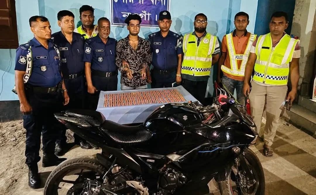 নওগাঁ জেলার দায়িত্বপ্রাপ্ত পুলিশ সুপার মোহাম্মদ তারিকুল ইসলামের দিকনির্দেশনায় এবং পোরশা থানার অফিসার ইনচার্জ মোঃ জিয়াউর রহমানের নেতৃত্বে পরিচালিত অভিযানে ১০০০ পিস ট্যাপেন্টাডল ট্যাবলেট ও একটি মোটরসাইকেলসহ এক মাদক কারবারিকে আটক করা হয়েছে। শনিবার (১৮ এপ্রিল ২০২৬) রাত আনুমানিক ৮টা ১০ মিনিটে পোরশা থানাধীন ৪নং গাংগুরিয়া ইউনিয়নের সরাইগাছি-সাপাহারগামী মহাসড়কের বালিয়াচান্দা ব্রিজ এলাকায় চেকপোস্ট পরিচালনার সময় মোটরসাইকেল আরোহী মোঃ শামীম চৌধুরী (২০)-কে থামানো হয়। তল্লাশিকালে তার সাথে থাকা শপিং ব্যাগ থেকে সাদা পলিথিনে মোড়ানো ১০০০ পিস ট্যাপেন্টাডল ট্যাবলেট উদ্ধার করা হয়, যার আনুমানিক মূল্য ৩ লাখ টাকা। এছাড়া মাদক পরিবহনে ব্যবহৃত একটি পুরাতন সুজুকি জিকসার মোটরসাইকেল (মূল্য প্রায় ২ লাখ টাকা) জব্দ করা হয়। আটক শামীম চৌধুরী নওগাঁ জেলার সাপাহার থানার চন্দুরা বাবুপুর এলাকার বাসিন্দা।