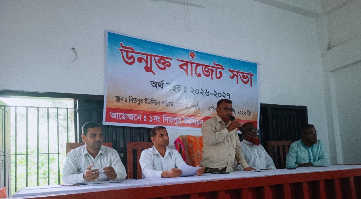 নওগাঁর পোরশায় উৎসব মুখর পরিবেশে ১ নং নিতপুর ইউনিয়ন পরিষদের আয়োজনে সকাল ১০ টায় পরিষদের হলরুমে ২৭/৪/২৬ইং তারিখে ২০২৬-২০২৭ অর্থ বছরের উৎসব মুখর পরিবেশে উন্মুক্ত বাজেট ঘোষণা করা হয়। উক্ত বাজেট ঘোষণা অনুষ্ঠানে নিতপুর ইউনিয়ন পরিষদ প্যানেল চেয়ারম্যান মোঃ রফিকুল ইসলাম এর সভাপতিত্বে এ সভা অনুষ্ঠিত হয়। উন্মুক্ত বাজেট ঘোষণা করেন ইউনিয়ন পরিষদের প্রশাসনিক কর্মকর্তা মোঃ মনিরুজ্জামান,অনুষ্ঠান টি সঞ্চালনা করেন হিসাব সহকারী, মোঃ সাইফুদ্দীন, এসময় উপস্থিত ছিলেন ইউ পি সদস্য মোঃ আব্দুল হামিদ, সদস্য মোঃ হাকিম, সদস্য মোঃ আকবর আলী, সদস্য মোঃ জাকারিয়া, সদস্য মোঃ এস্তাবআলী, সংরক্ষিত নারী সদস্য মোসাঃ ফরিদা বেগম, মোসাঃ মাসুমা,মোসাঃ আম্বারা বেগম, সহ শতাধিক জনসাধারণ ও সাংবাদিক ও গণ্যমান্য ব্যক্তিবর্গ প্রমুখ। উল্লেখ্য ২০২৬-২০২৭ অর্থ বছরে নিতপুর ইউনিয়ন পরিষদের রাজস্ব আয়, ২২,৮০,৫২১/-টাকা রাজস্ব ব্যয়২১,৩৯,৫২১/-এবং উন্নয়ন আয় ৫,৭৬,৫১,২৮০/-উন্নয়ন ব্যয়-৫,৭৬,৫১,২৮০/টাকা ধরে বাজেট ঘোষণা করা হয় সর্বমোট বাজেট আয়-৫,৯৯,৩১,৮০১/-এবং বাজেট ব্যয়-৫,৯৭,৯০,৮০১/-অর্থ বছর শেষে বাজেট উদ্বৃত্ত-১,৪১,০০০/- টাকা।