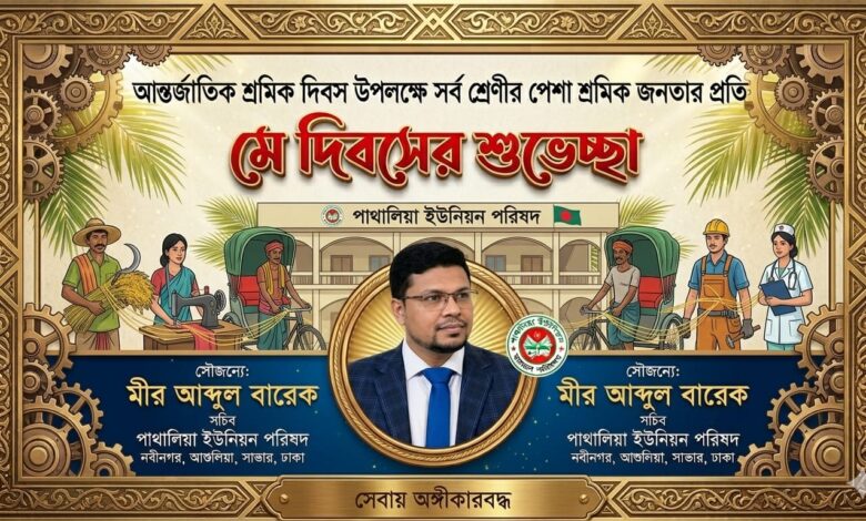 আন্তর্জাতিক শ্রমিক দিবস উপলক্ষে রূপগঞ্জের সকল শ্রমজীবী ও মেহনতি মানুষের প্রতি গভীর শ্রদ্ধা, ভালোবাসা এবং সংগ্রামী শুভেচ্ছা জানিয়েছেন পাথালিয়া ইউনিয়ন পরিষদের সচিব মীর আব্দুল বারেক।বুধবার (১ মে) মহান মে দিবস উপলক্ষে দেওয়া এক বার্তায় তিনি বলেন, “যাদের কঠোর পরিশ্রম ও আত্মত্যাগে দেশ আজ উন্নয়ন ও সাফল্যের পথে এগিয়ে যাচ্ছে, সেই শ্রমজীবী মানুষের প্রতি জানাই অন্তরের গভীর থেকে শ্রদ্ধা ও ভালোবাসা। শ্রমিকরাই দেশের অগ্রগতির মূল চালিকাশক্তি। তিনি আরও বলেন, ১৮৮৬ সালের ১ মে শ্রমিকদের ন্যায্য অধিকার, উপযুক্ত মজুরি এবং দৈনিক ৮ ঘণ্টা কর্মঘণ্টার দাবিতে আত্মোৎসর্গের মধ্য দিয়ে যে আন্দোলনের সূচনা হয়েছিল, তারই ধারাবাহিকতায় বিশ্বজুড়ে পালিত হচ্ছে মহান মে দিবস। এই দিনটি শ্রমিকদের অধিকার প্রতিষ্ঠা, বৈষম্যহীন সমাজ গঠন এবং শোষণমুক্ত রাষ্ট্র প্রতিষ্ঠার প্রেরণা জোগায়।মীর আব্দুল বারেক বলেন, মে দিবস শুধু একটি স্মরণীয় দিন নয়, এটি শ্রমিক-মালিক ঐক্য, ন্যায়ভিত্তিক সমাজ এবং বৈষম্যমুক্ত বাংলাদেশ গড়ার অঙ্গীকারের দিন। শ্রমিকদের ঘাম, শ্রম ও ত্যাগেই সভ্যতার অগ্রযাত্রা অব্যাহত রয়েছে।তিনি মহান মে দিবসে বিশ্বের সকল শ্রমজীবী মানুষের প্রতি শ্রদ্ধা জানিয়ে বলেন, শ্রমিক-মালিক ঐক্য গড়ি, বৈষম্যমুক্ত সমাজ প্রতিষ্ঠা করি। মহান মে দিবসের চেতনায় অন্যায়, শোষণ ও বৈষম্যের বিরুদ্ধে আমাদের সবাইকে ঐক্যবদ্ধ হতে হবে।